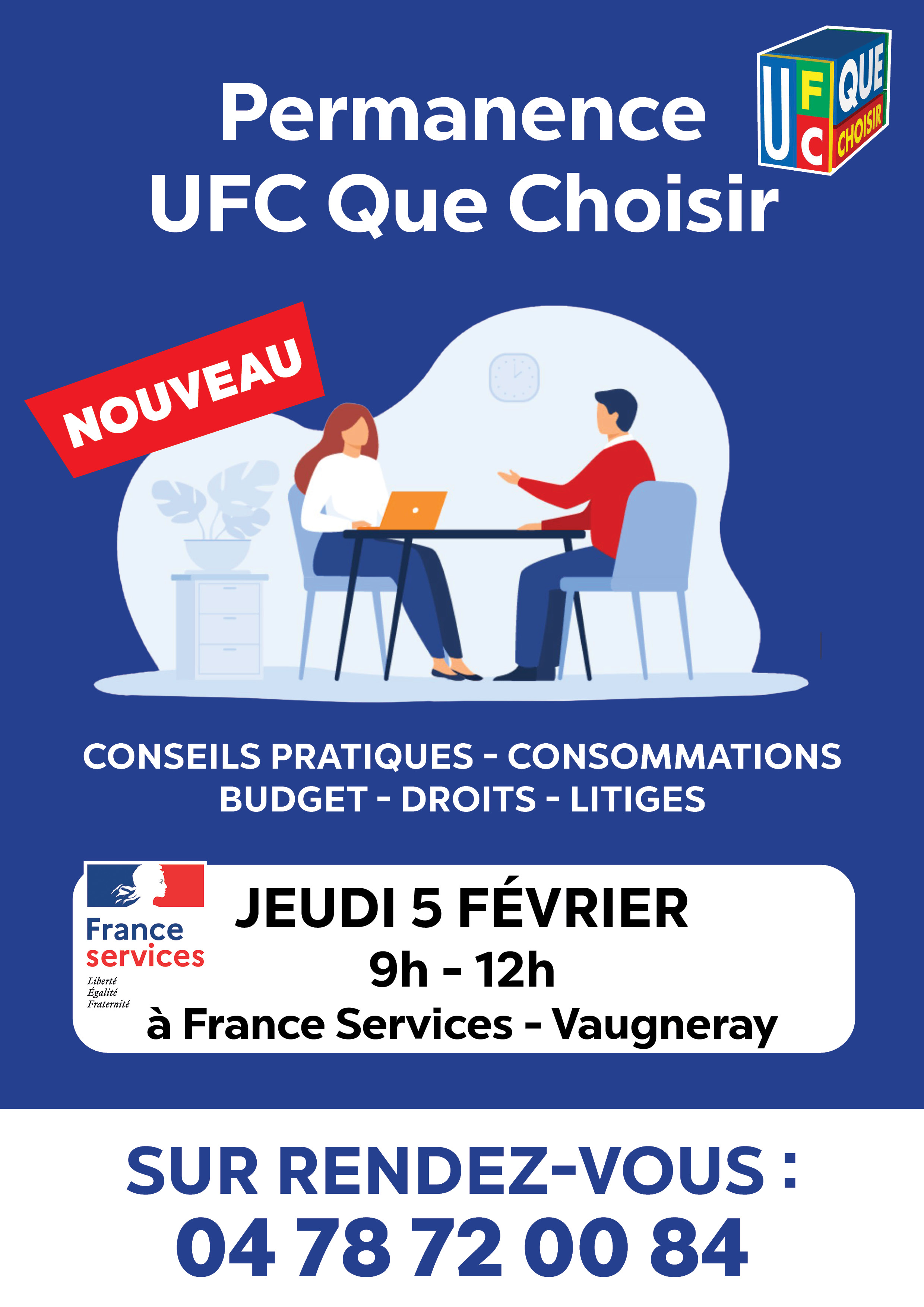 L’association de consommateurs "UFC Que Choisir" sera présente le 1er jeudi matin du mois à l’espace France Services pour vous accompagner, vous conseiller et vous défendre lorsque cela s’avère nécessaire.